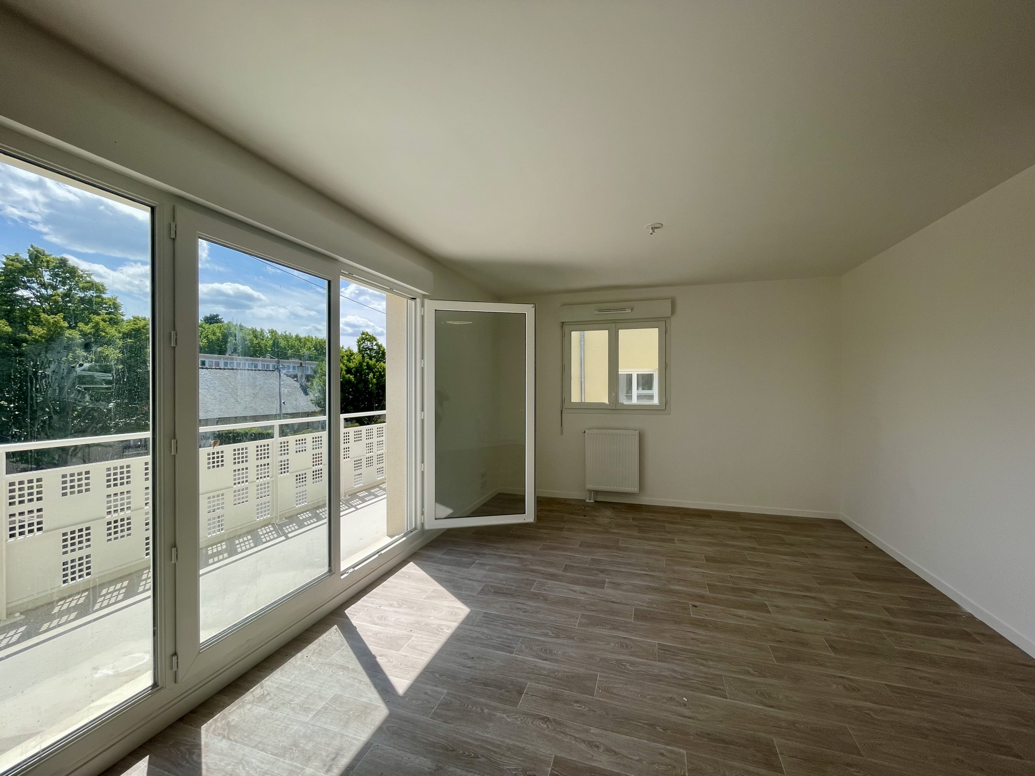 Une Pièce de vie principale de 27m2 ouverte sur le balcon de 10m2, une chambre de 12,37m2 avec placard, une autre chambre de 11.39m2 également avec placard, puis une salle d’eau, et wc indépendant