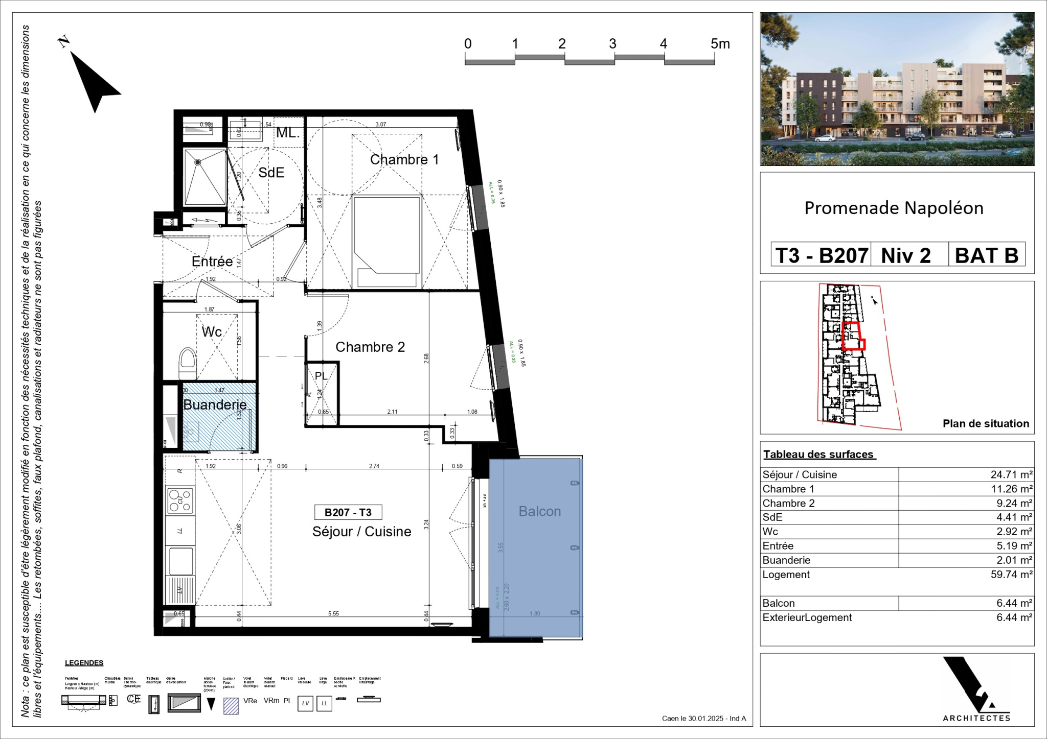 Une surface habitable de 59.13m2 plus une loggia, et un grand séjour.