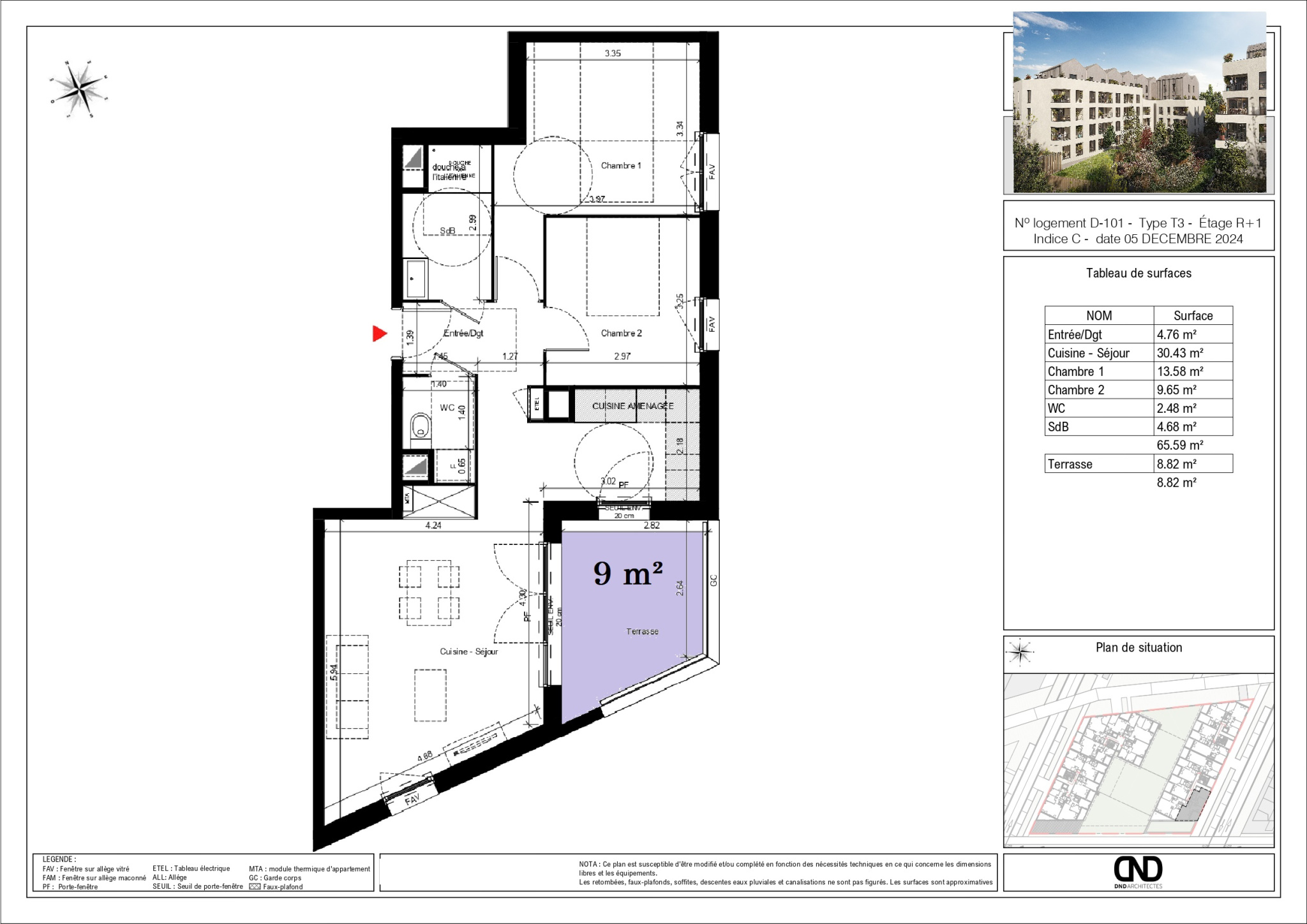 Cet Appartement proposera une pièce de vie principale avec cuisine séparée de 30m2 ouverte sur l’extérieur, puis 2 chambres de 13m2 et 9m2, une salle d’eau, et wc indépendant. Placards aménagés.