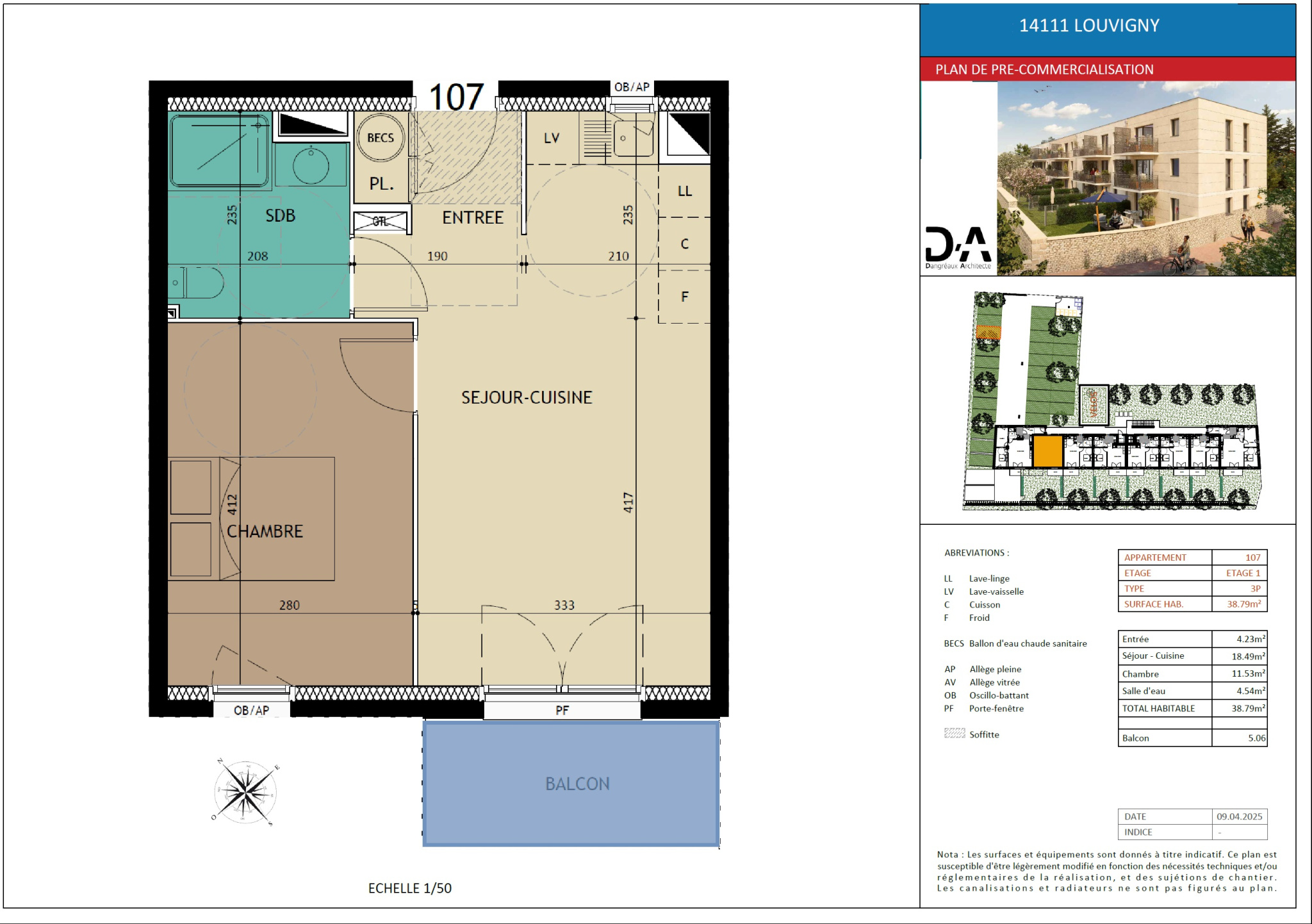 Un appartement offrant une pièce de vie de 26m2 ouverte sur l’extérieur, une cuisine ouverte, puis une chambre avec porte fenetre ouverte sur le jardin exposéesud et Est, une salle d’eau, un wc indépendant