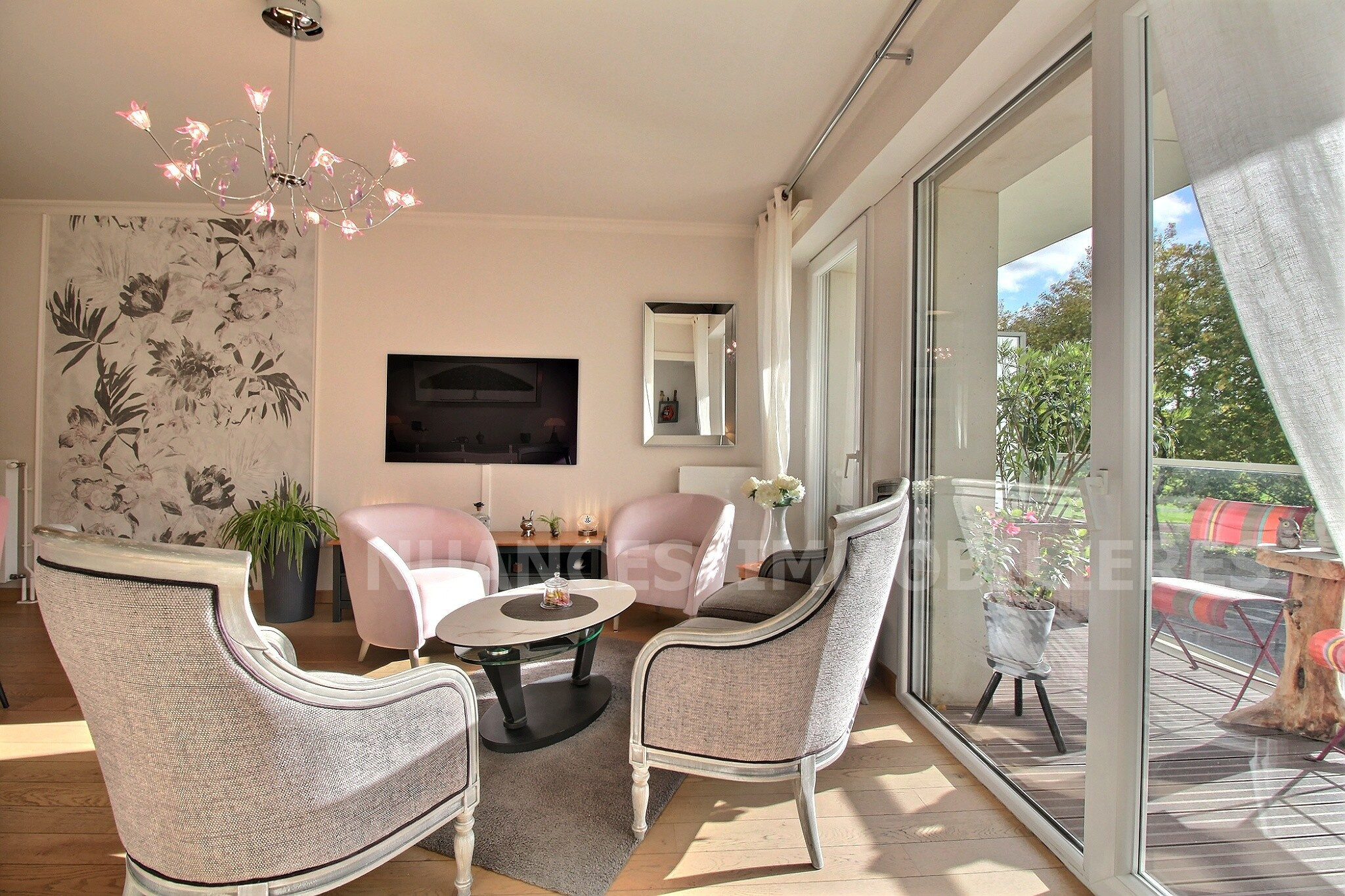 Nuances immobilières vous propose à CAEN du coté CHR, un rare Appartement 5P de 108m2 habitable offrant 2 terrasse et un beau jardin plein Sud.