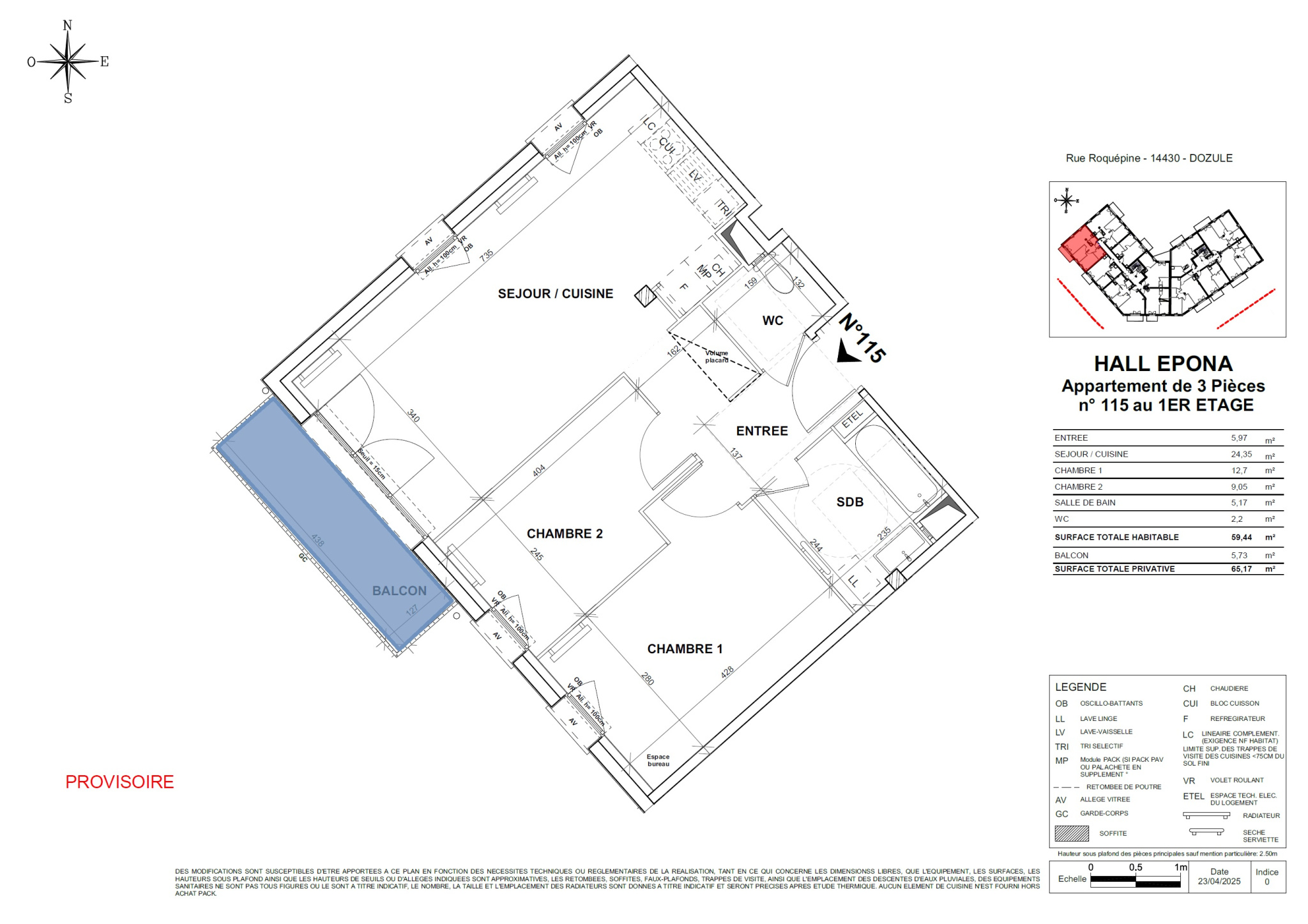 Cet appartement disposera d’un balcon de 5m2, une pièce de vie de 22m2, et d’une pièce d’eau proche de l’entreé .