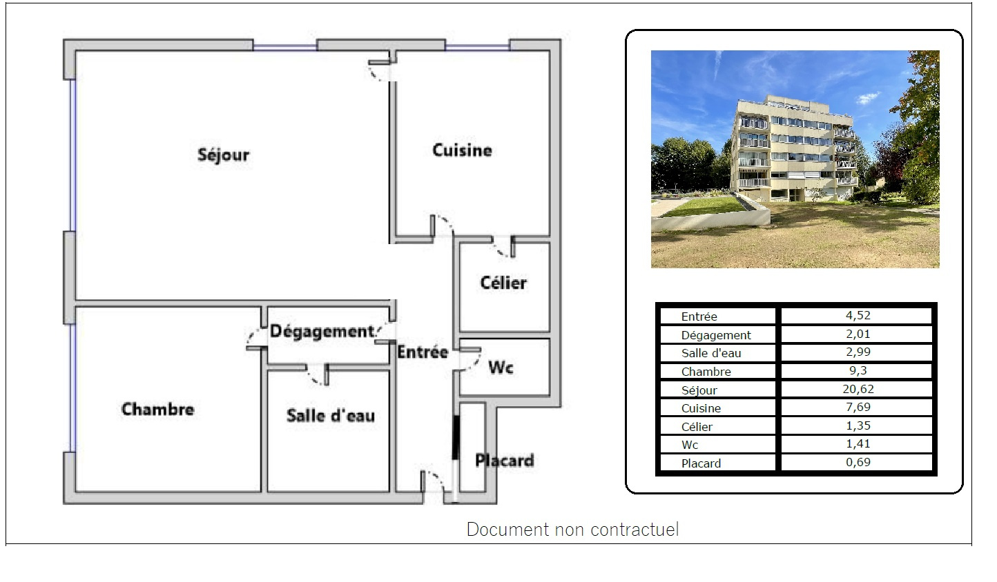 Ce bien se présente par une entrée avec grand placard, une cuisine aménagée fermé, une pièce de vie de 21m2 ouverte sur le beau balcon exposé Ouest, puis coté nuit, un petit dégagement desservant une pièce d’eau, et la chambre.