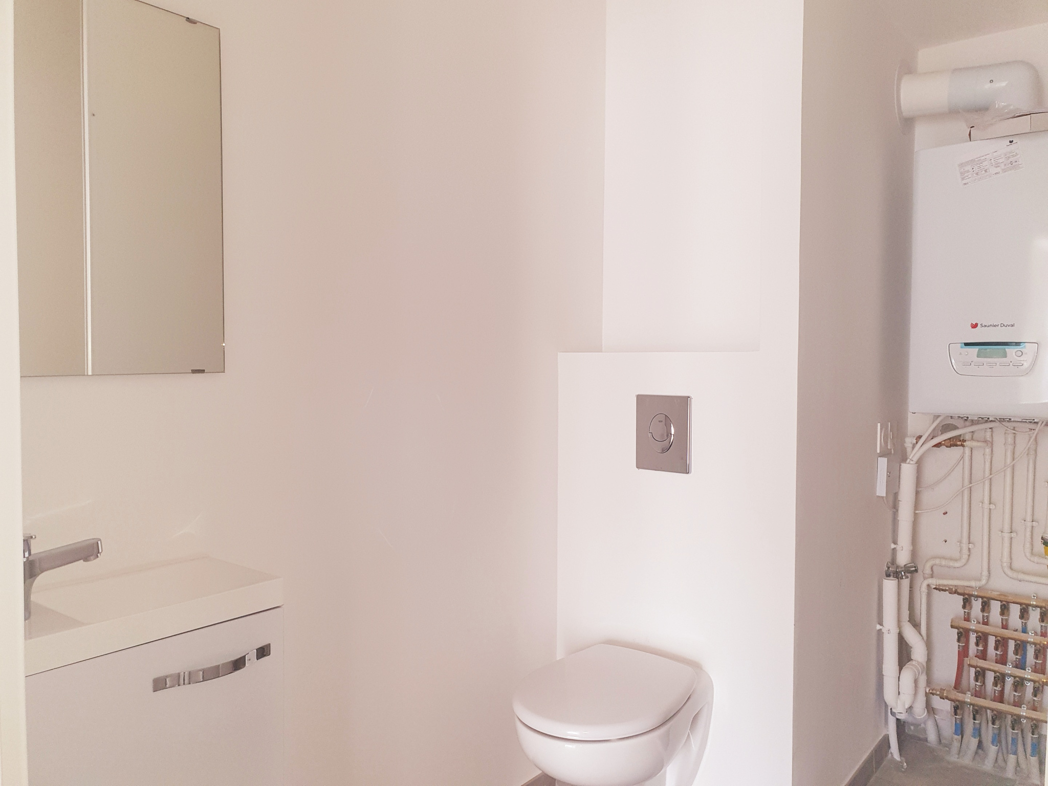 Il se compose d’une entrée avec placard, d’une pièce de vie principale de 30m2 avec cuisine ouverte, puis deux chambres de 11m2 et 9.80m2, d’une salle d’eau et d’un wc indépendant.