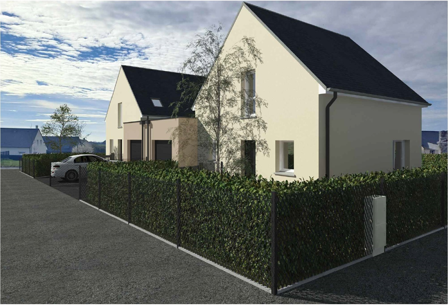Maison individuelle accolée uniquement par le garage.