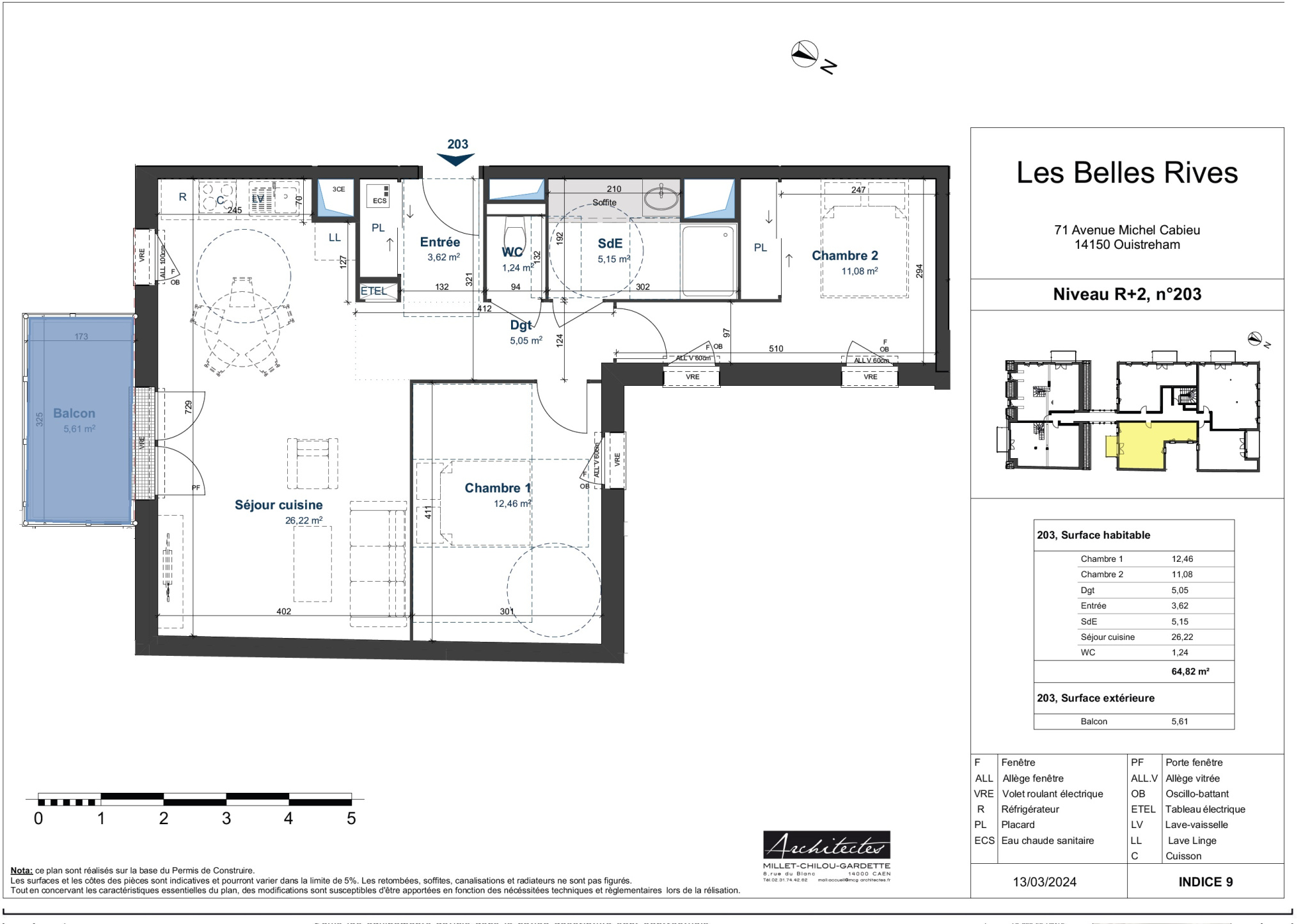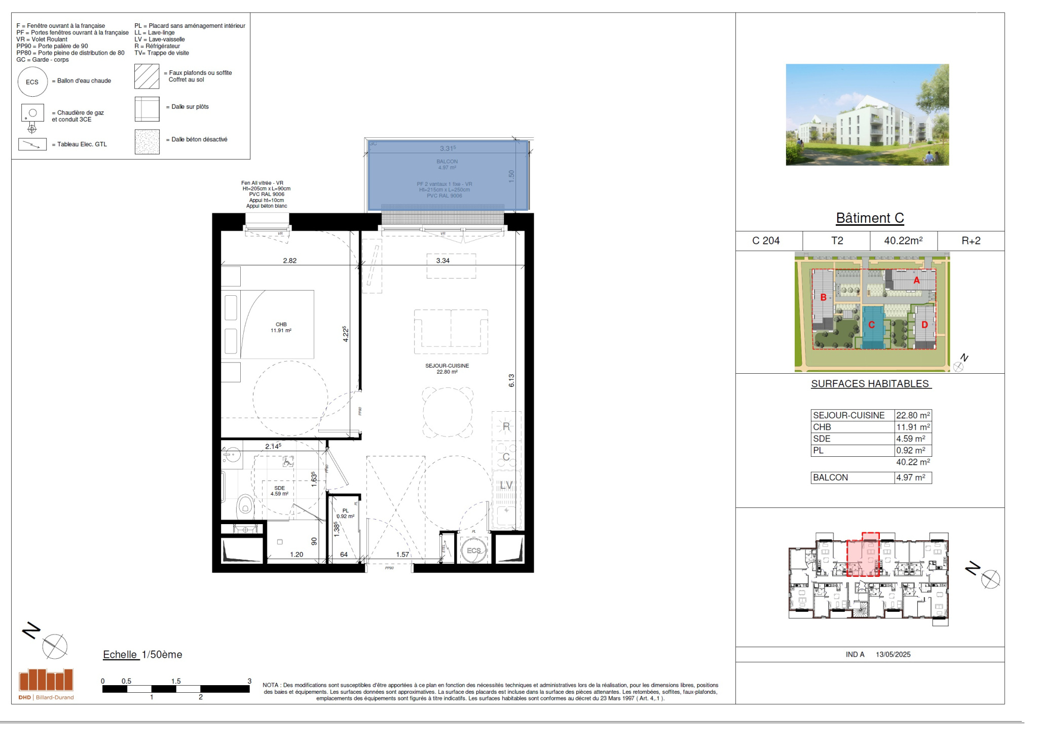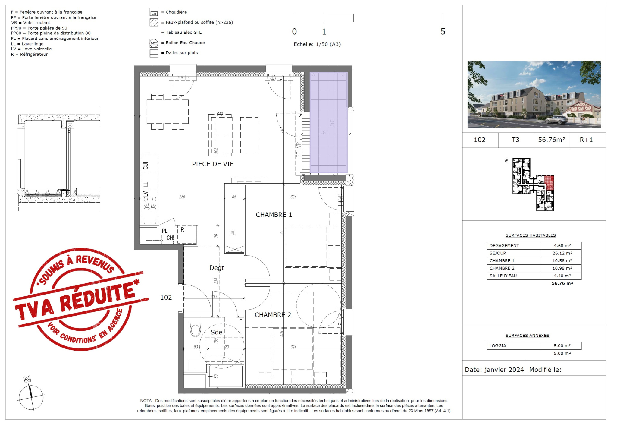 Ici, nous vous présentons au sein du bâtiment B, un appartement aiu 1er étage de type 3Pièces en angle offrant de belels vues sur le centre ancien de Touques.