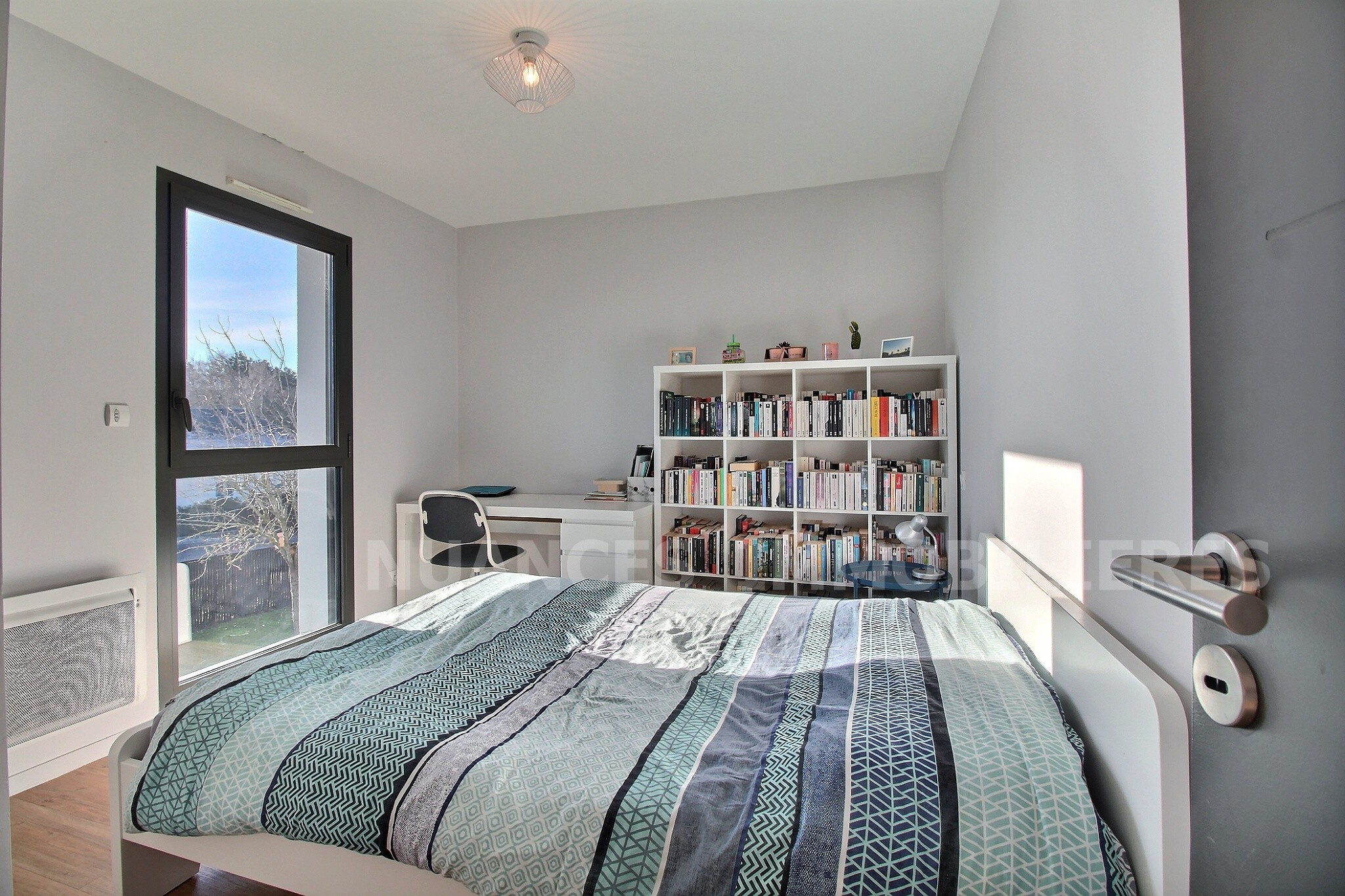 Ici,nous vous présentons un des plus bel appartement de la résidence, un garnd 3 Pièces de 76m2 offrant une pièce de vie de 29m2 ouverte sur sa loggia de 7m2 exposée plein sud, un cellier, 2 chambres confortables de plus de 11m2 + dressing, dans une des chambres, une salle d’eau et un toilette indépendant,