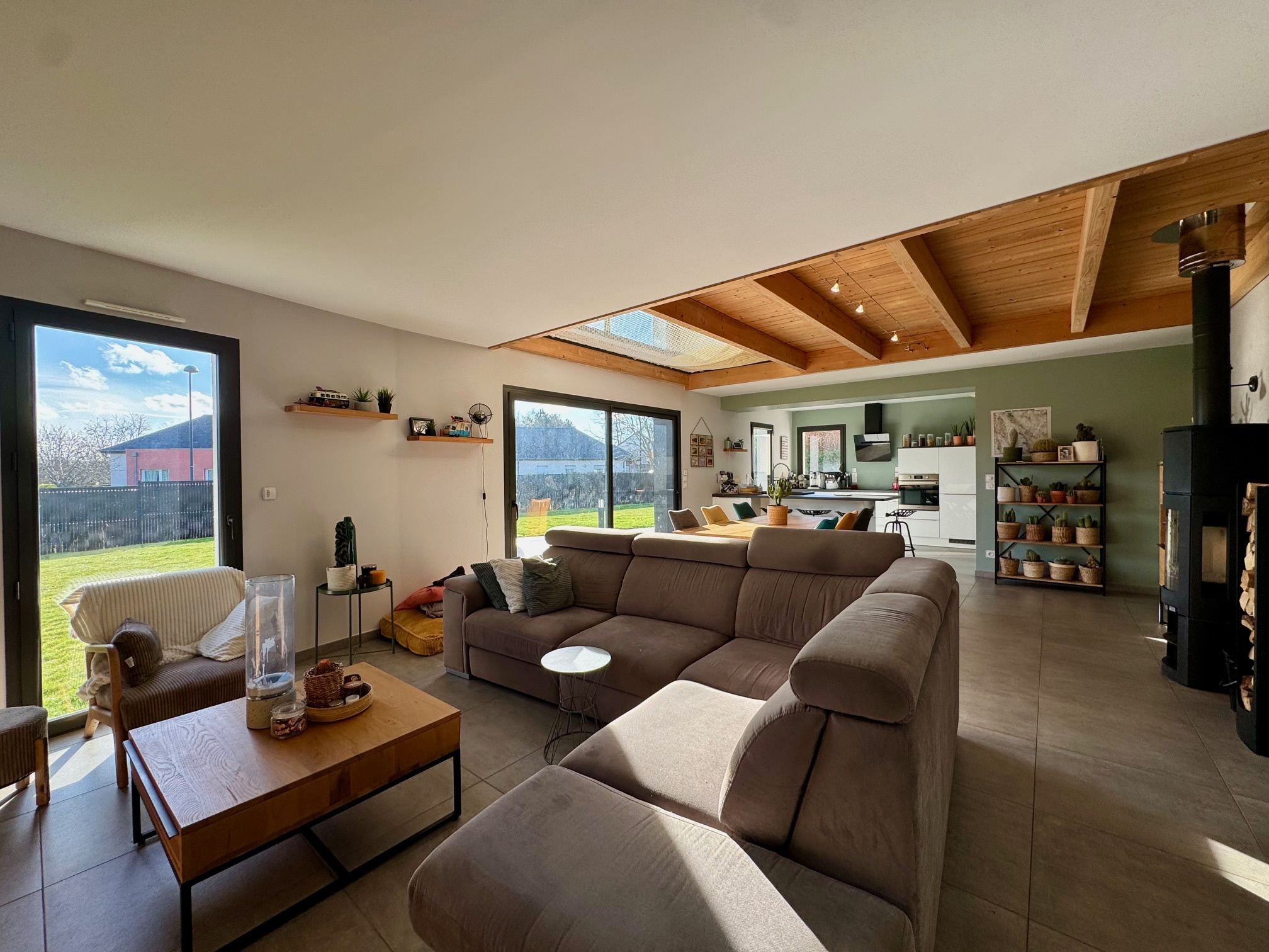 Particularité : la pièce de vie offre une double hauteur sous plafond !