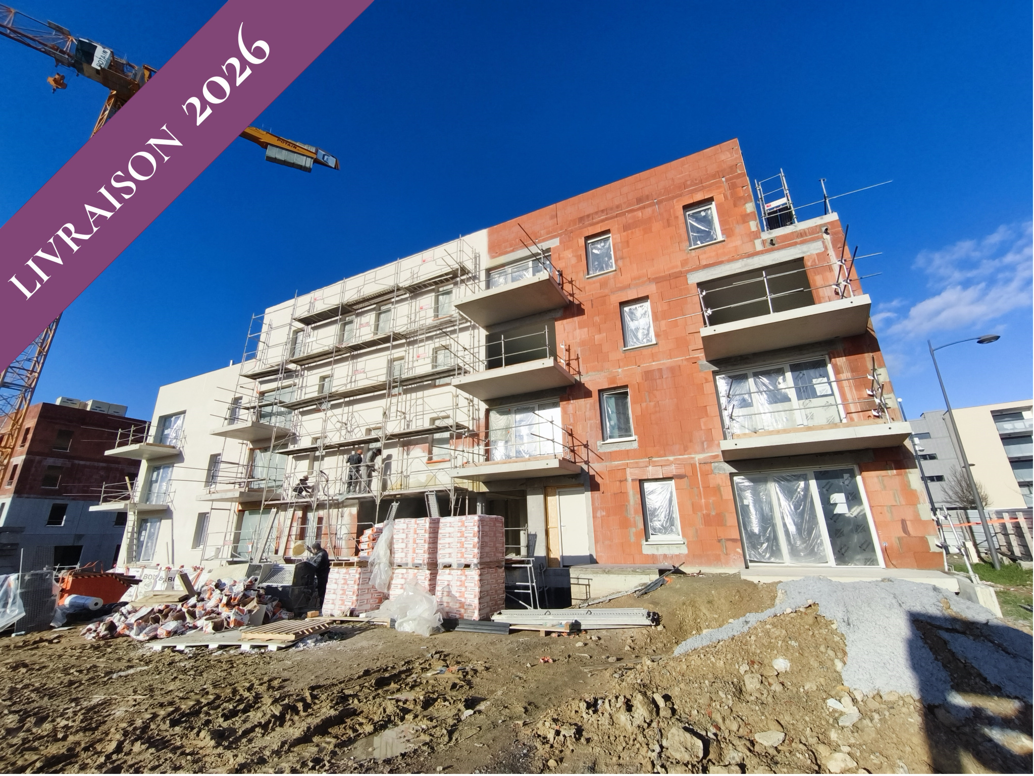 L’appartement disposera d’une pièce de vie de 25m2 ouverte sur l’extérieur, puis 2 chambre dont une de plus de 11m2, salle d’eau avec douche à l’italienne, et wc indépendant.