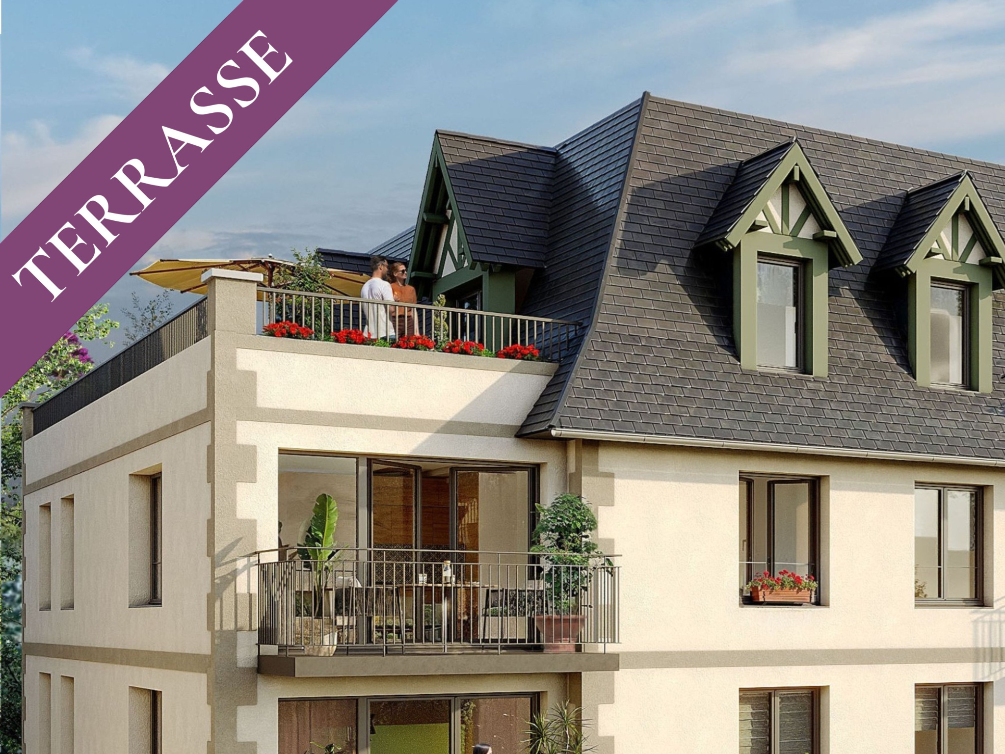 Nuances immobilières vous propose aux portes de Deauville, à Touques, à deux pas du centre avec commerces accessibles à pied, une petite résidence avec toiture mansardée composée de 19 logements en tout répartie en 2 bâtiments.