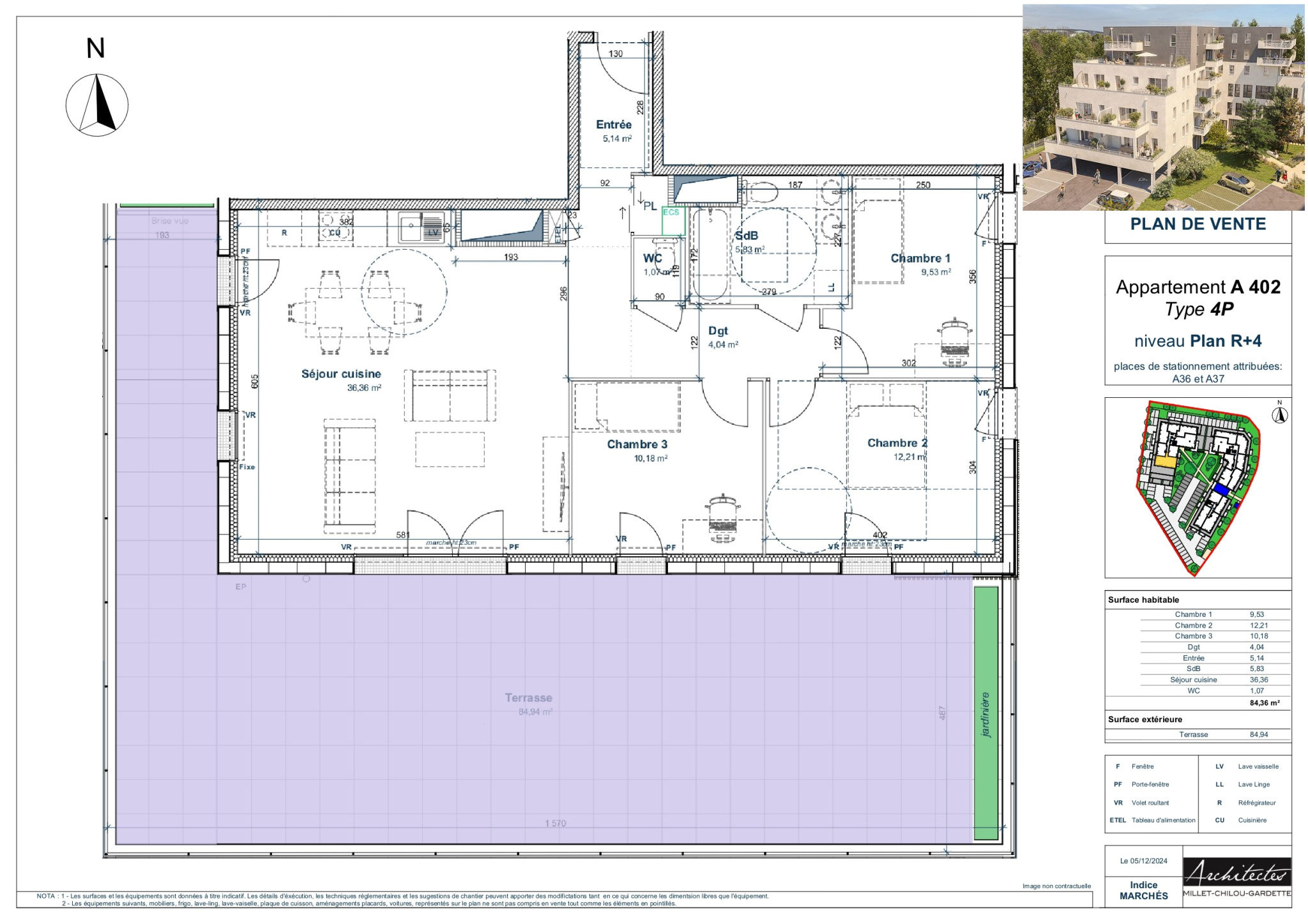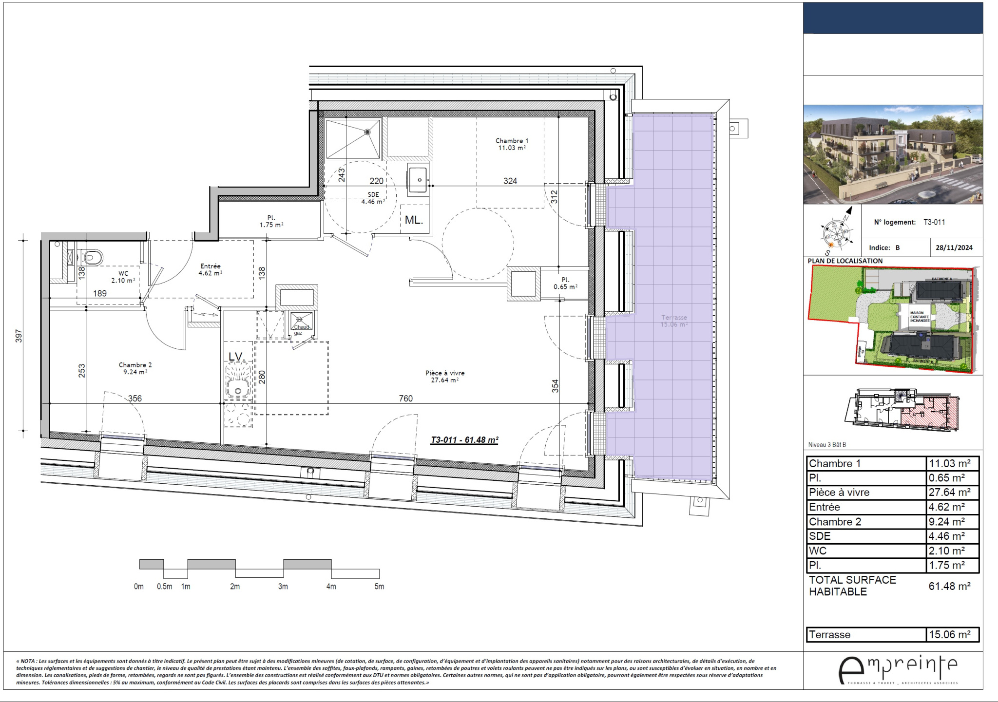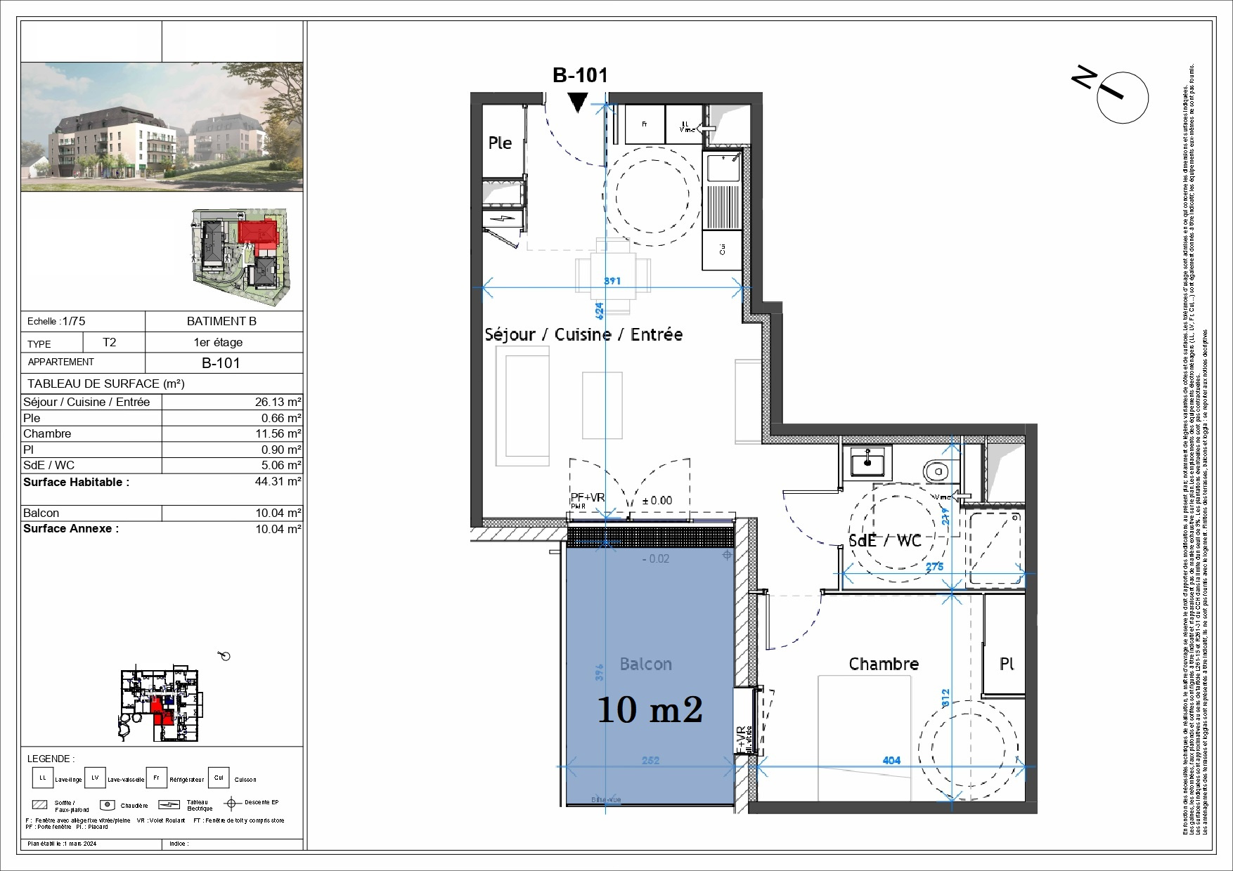 Ici, nous vous présentons au sein du bâtiment B, un appartement terrasse au dernier étage avec terrasse de 15m2, il se compose de 3Pièces en angle offrant de belels vues sur le centre ancien de Touques.