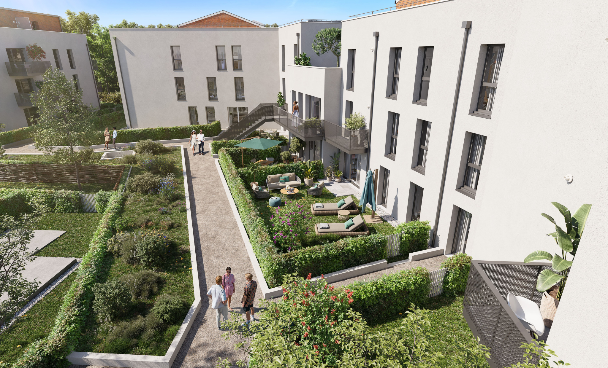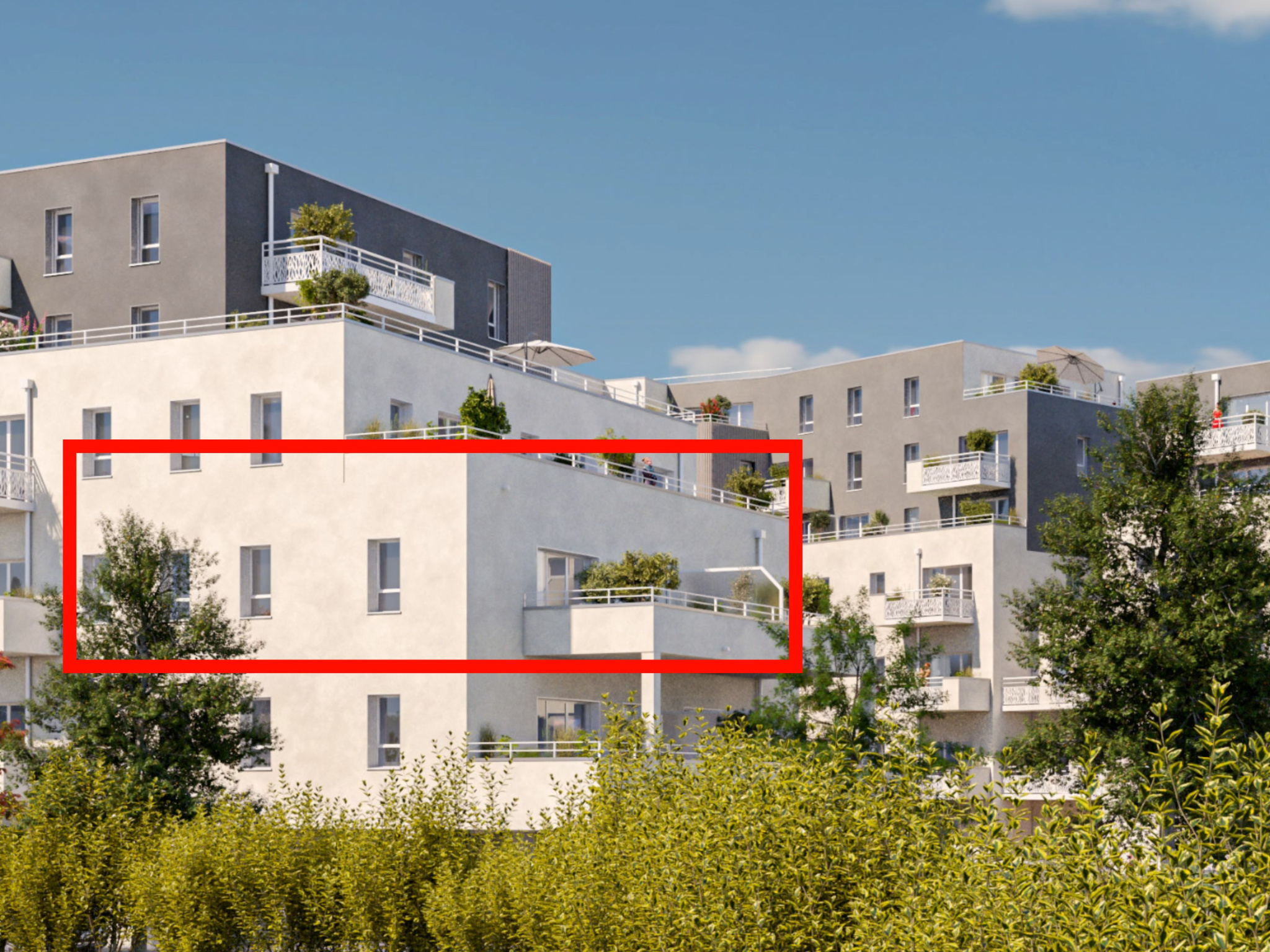 L’appartement disposera d’une pièce de vie de 26m2 ouverte sur l’extérieur, puis 2 chambres dont une avec accès sur le balcon profond, salle d’eau avec douche à l’italienne, et wc indépendant.