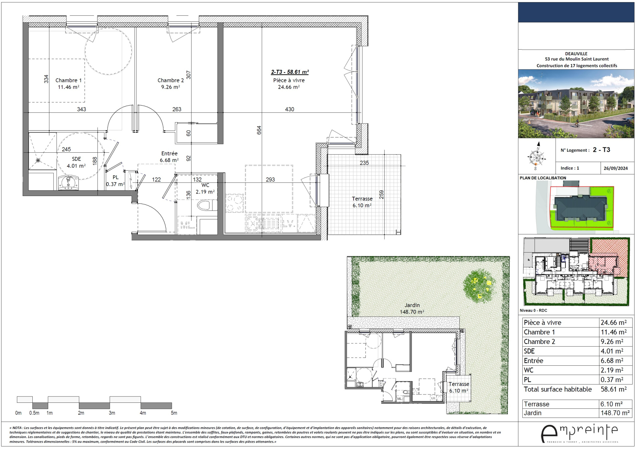 Ici, nous vous présentons un appartement avec jardin et terrasse exposés Soleil du matin.
