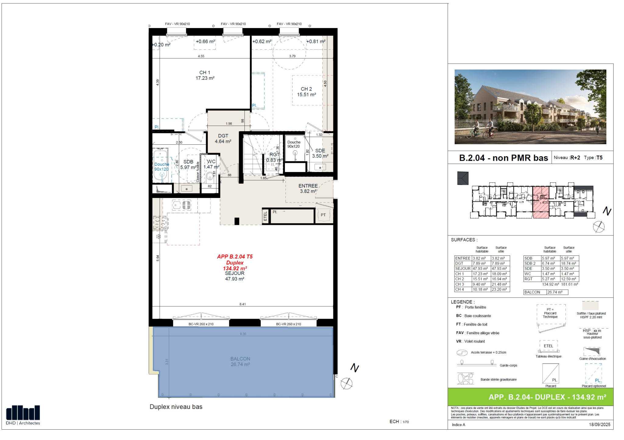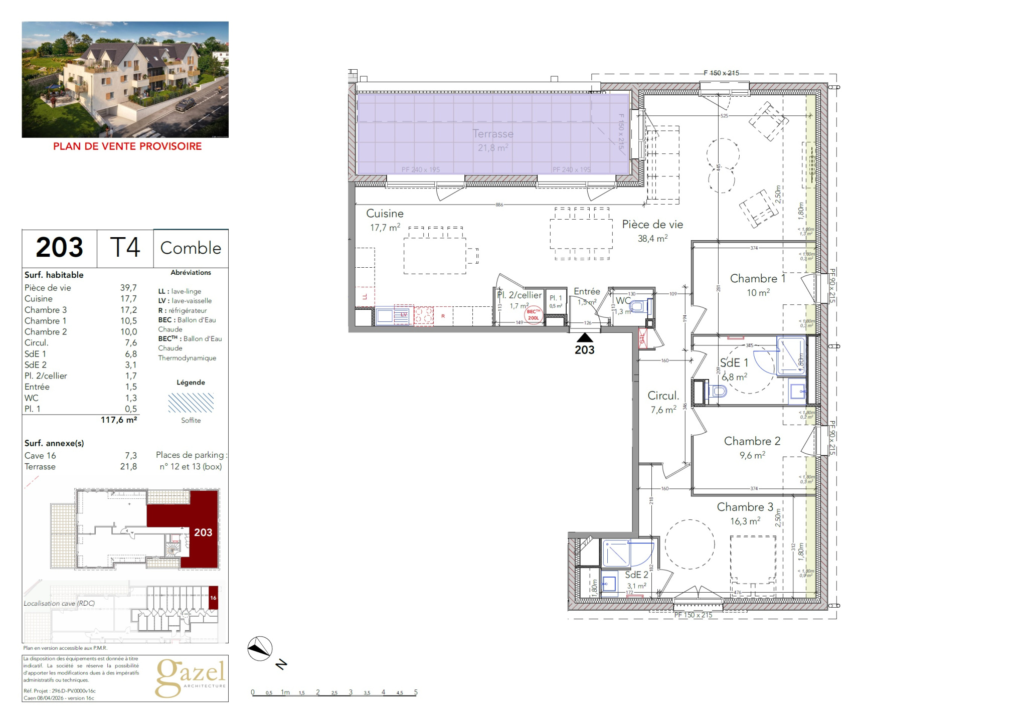 Entrée, une pièce de vie principale de 51m2 avec cuisine ouverte sur la terrasse de 17m2, 3 chambres (13 m2 /10m2 /13 m2), une salle d’eau et un wc indépendant.