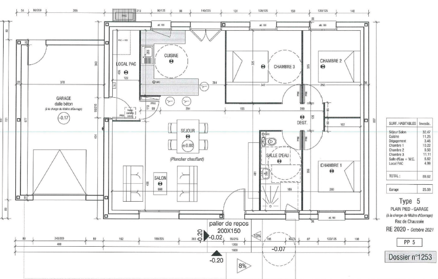 Cette maison se compose d’une belle pièce de vie traversante de 45m2 environ avec cuisine ouverte, parfaitement exposée et lumineuse; un couloir desservant 3 chambres, une salle d’eau avec WC, un cellier et un grand garage de plus de 25m2.