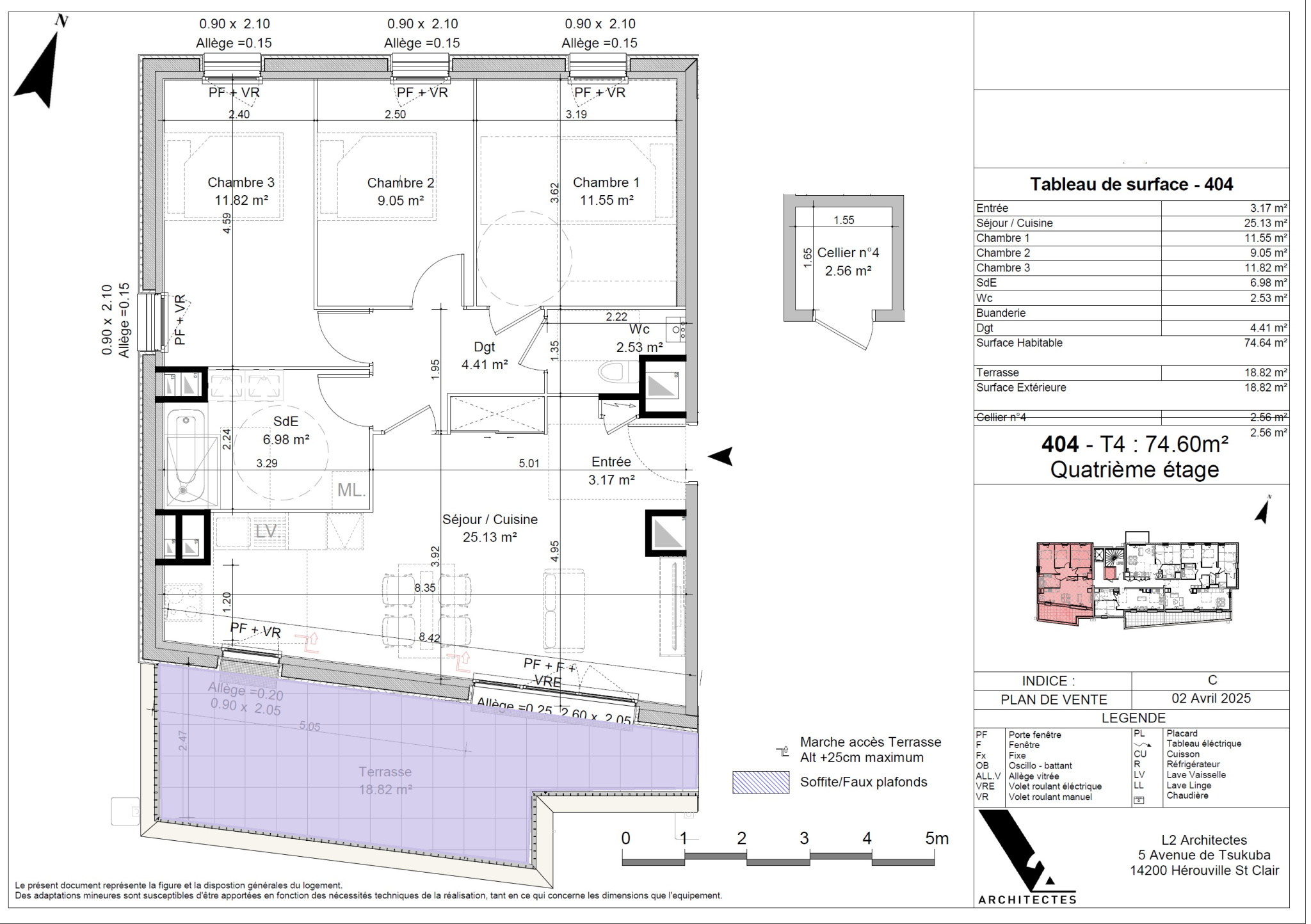 Ici,nous vous présentons un des plus bel appartement de la résidence, de type 4/5 Pièces offrant une pièce de vie de 51m2 avec terrase de 18m2 et une cuisine ouverte sur un balcon, 3 chambres confortables dont deux de plus de 12m2, deux pièces d’eau, une dressing et un espace cellier.