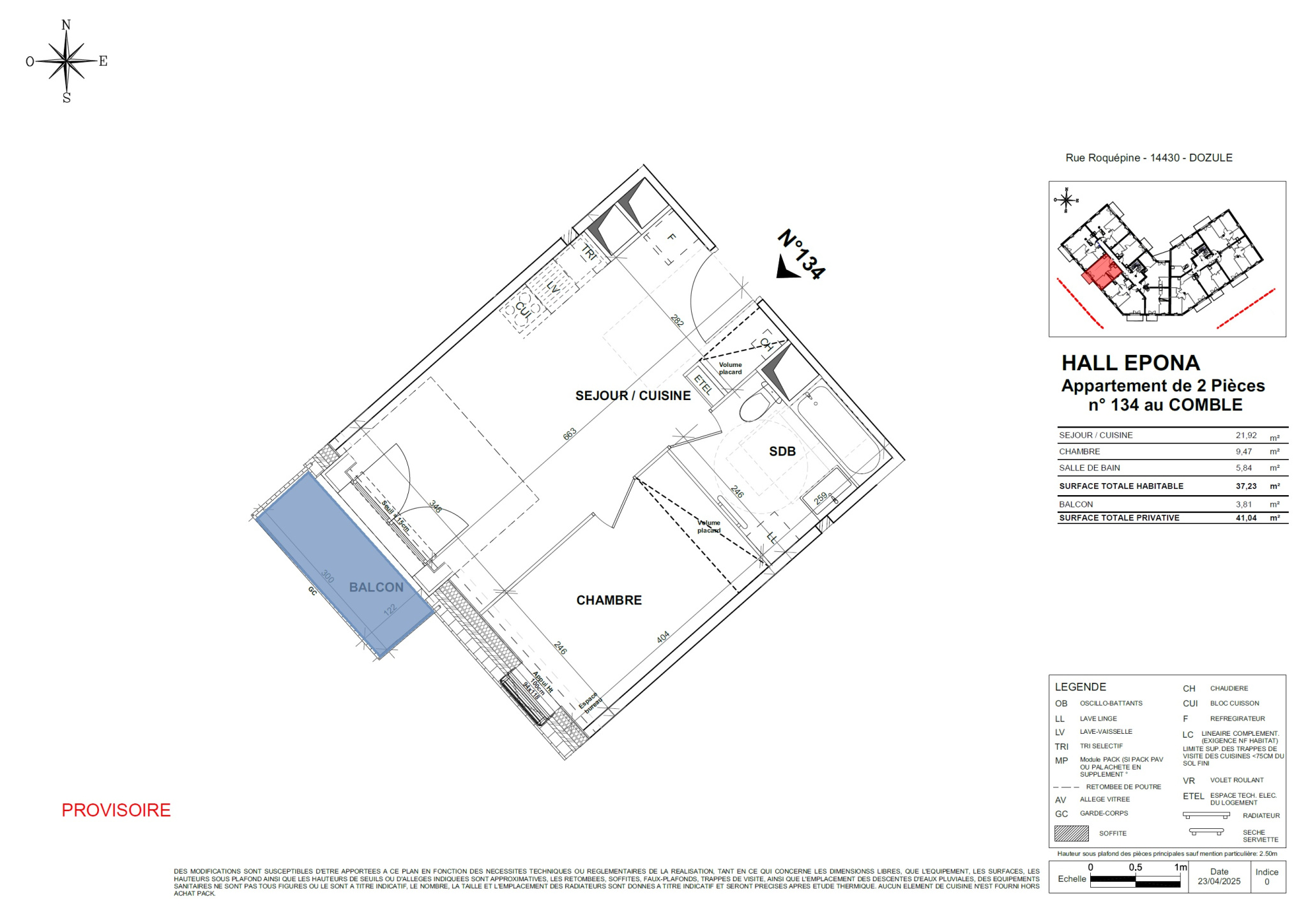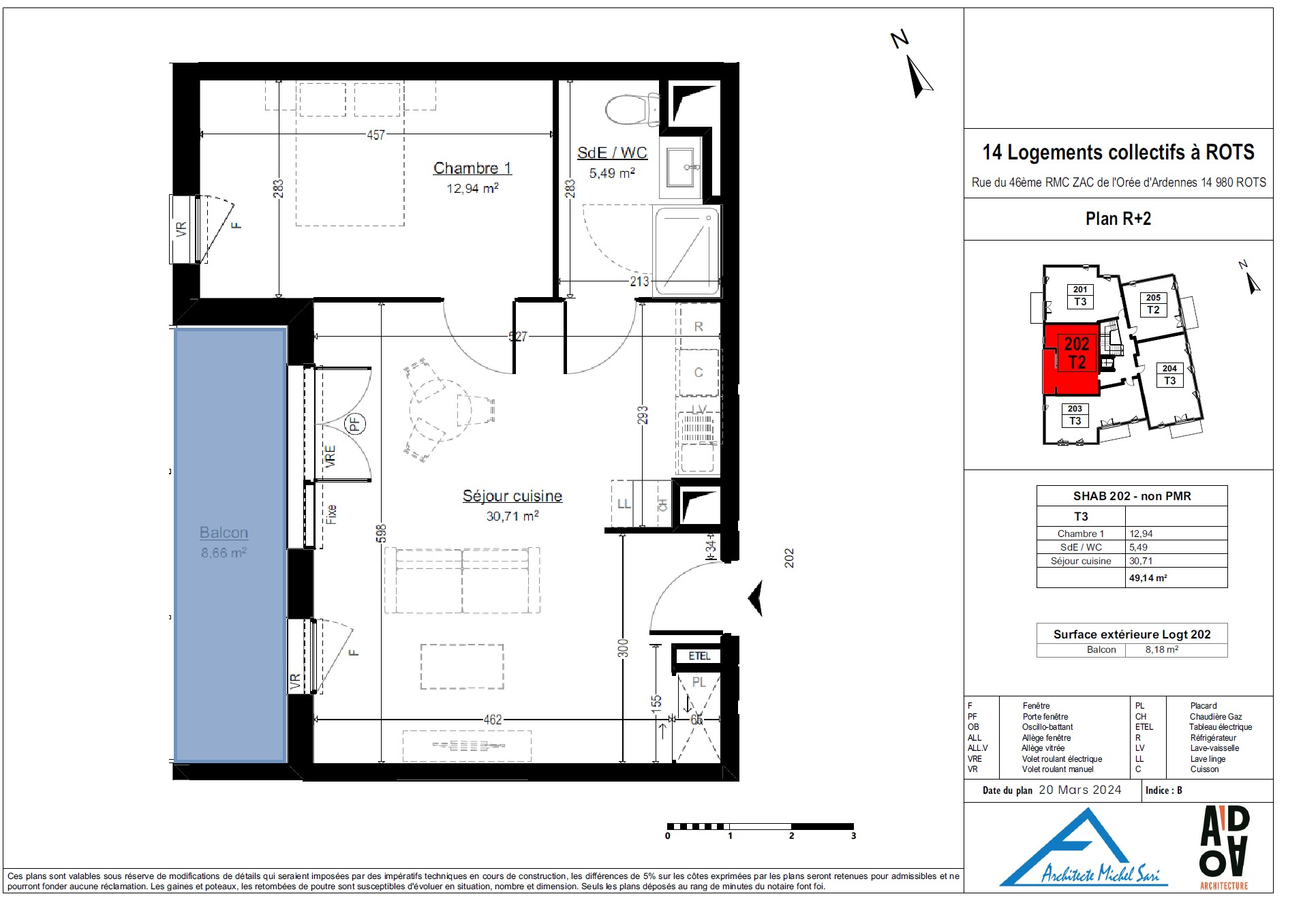 Cet appartement disposera d’un balcon de 5m2, une pièce de vie de 22m2, et d’une pièce d’eau proche de l’entreé .