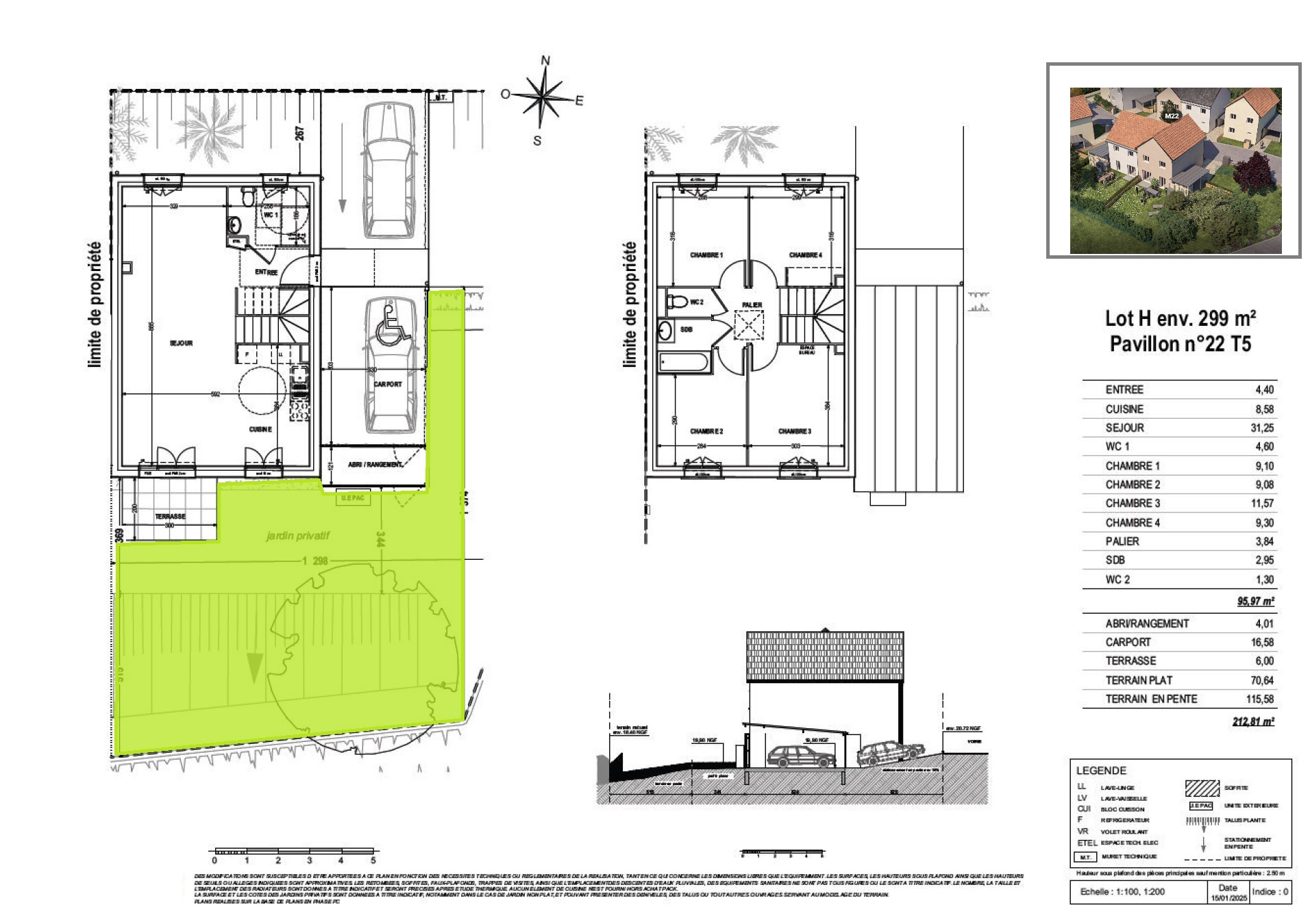 Belles finitions proposées : (Sols en carrellage 45*45cm en gré pour toutes les pièces du Rdc, volets roulants électriques,choix des faiences pour les pièces d’eau, peinture sur tous les murs).