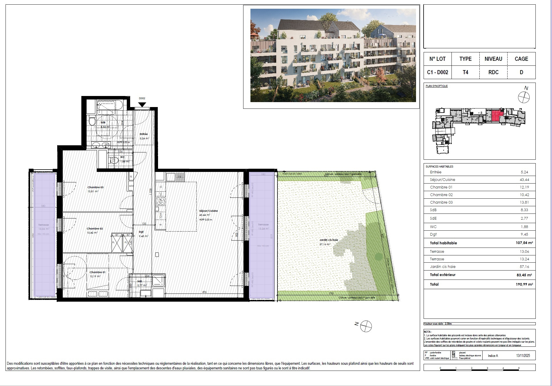 Ici, nous vous présentons au sein du bâtiment B, un appartement en rez de jardin de type 2Pièces bénéficiant d’une terrasse de 4m2 exposée Sud et d’un grand jardin clos.