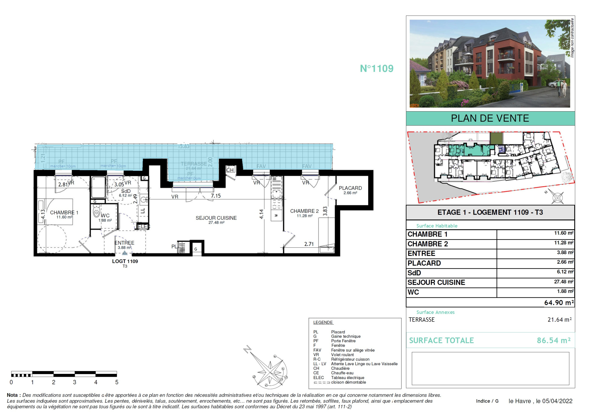 Cette résidence propose de belles prestations (volets roulants électriques,revetement de sol en carrellage 45*45 pour la pièce de vie principale,parquet dans les chambres, menuiseries avec volets roulants électriques, bac à douche de grande taille (80*110cm) , salle d’eau aménagée ,vidéophone controlant les accès).