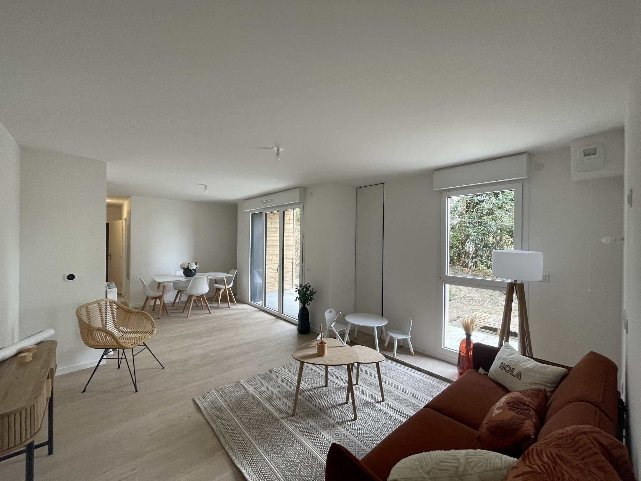 Une grande pièce de vie de 26m2 ouverte sur l’extérieur, un espace cuisine avec fenêtre, puis deux chambres dont une grande de plus de 12m2, une salle d’eau et un wc indépendant.